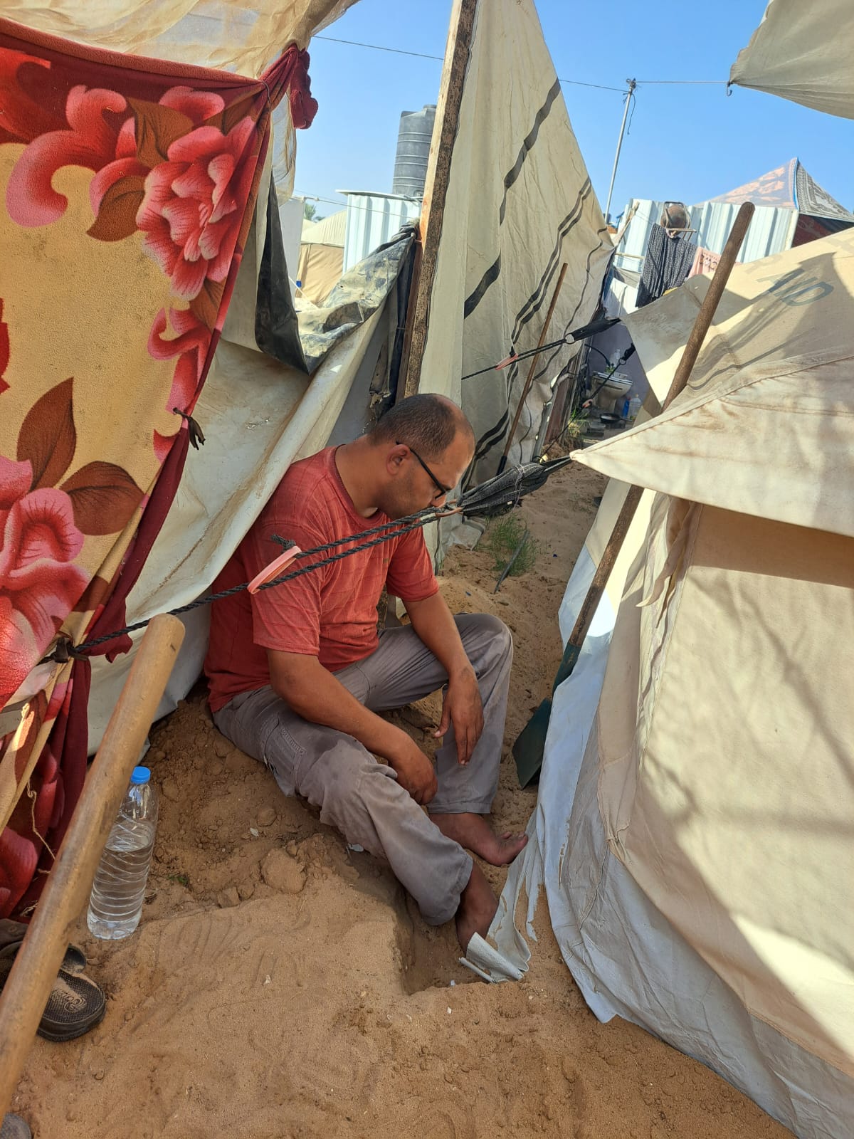 Israel’s excessive military action in Lebanon makes you forget that the genocidal attack in Gaza continues. For almost a year now. Not a day goes by without civilian casualties. There is no more talk of a ceasefire. For the 1.9 million displaced Palestinians, life in the tent camps is becoming grimmer and more hopeless by the day. Autumn has arrived in Gaza and heavy rains have caused even more misery. The often sewn-together flour sacks, sheets of plastic and old blankets are no match for the heavy autumn rains. Mohammed Abu Afash had dug a small trench around his tent as a precaution and tied all the ropes firmly. This did not prevent the tent from filling up with water this week and the mattresses and clothes from getting wet. The tents are no match for the rain showers. “What is happening to us, you wouldn’t even do to an animal,” Mohammed wrote to me. He and his friends are exhausted and feel helpless. Without a home, work, money and perspective. I have been keeping you informed for eight months now about what happens to my friends in Khan Younis, whom I continue to support. If you want to share supporting them: please do! Mohammed in turn shares the little money (if he has it) and food with his neighbours, friends and acquaintances.